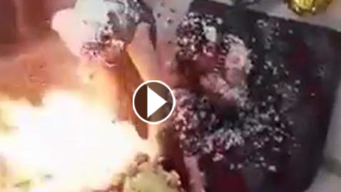 بالفيديو.. عيد ميلاد ينتهي باشتعال النيران في فتاتين