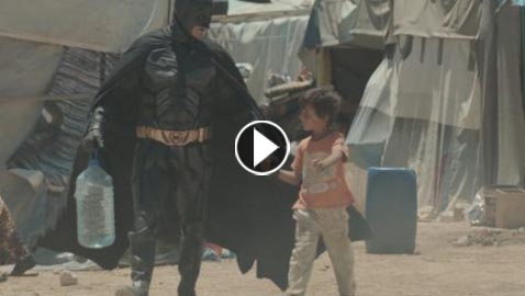 باتمان يلعب الغميضة مع طفل سوري في مخيم لاجئين