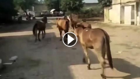 بالفيديو: الشرطة الهندية تعتقل 8 حمير وتسجنها 4 ايام!