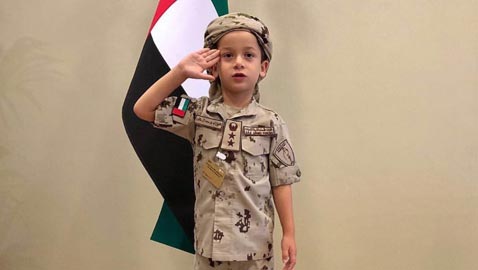 صورة الطفل زايد ابن حاكم دبي بالزي العسكري، ووالده فخور ..