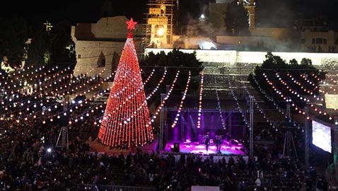بالصور.. بيت لحم تضيء شجرة الميلاد في ساحة كنسية المهد