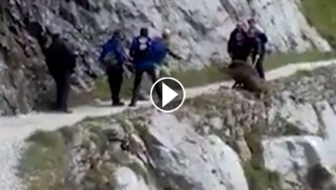 فيديو مؤلم: متسلقون يلقون حيوانا من قمة جبل دون رحمة