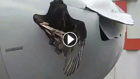 طائر كاد يتسبب بسقوط طائرة ركاب.. فيديو