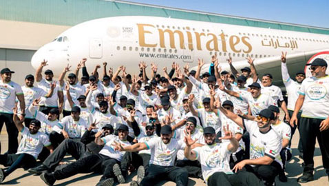 دبي: 56 شرطياً يجرون أضخم طائرة ركاب بالعالم.. صور
