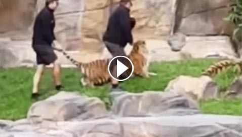 فيديو مؤلم.. حارس حديقة يصفع نمرا على وجهه ويسحب ذيل آخر!