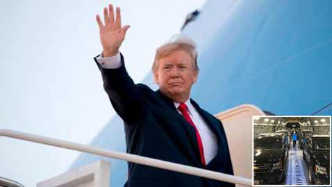 بالصور.. كل هذا الأسطول من السيارات يسافر مع ترامب على متن ..