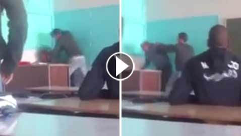 فيديو صادم.. تلميذ ينهال بالضرب العنيف على أستاذه يثير غضب ..