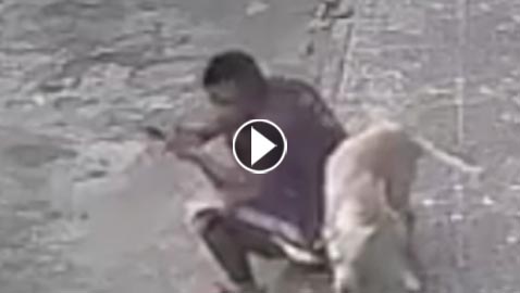 كلب تبول على شاب في الشارع.. ردة فعله ستفاجئك! فيديو