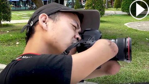 يستخدم فمه لالتقاط الصور.. مصور محترف بلا يدين وقدمين يبهر ..