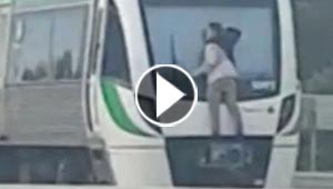 فيديو مثير.. شاب متهور يتشبث بمؤخرة قطار يسير بسرعة عالية!