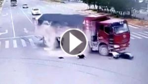 فيديو مروع.. شاهد كيف نجا سائق دراجة نارية من بين عجلات ..