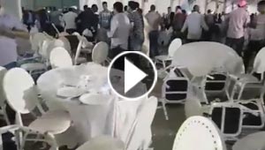 معركة وتراشق بالصحون والكراسي في افتتاح مؤتمر حزبي ..