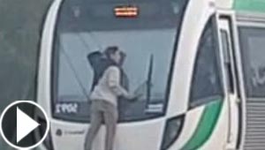 فيديو مثير.. شاب يتشبث بمؤخرة قطار يسير بسرعة 110 كم/س