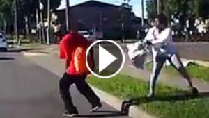 فيديو صادم.. امرأة تدفع حبيبها امام سيارة مسرعة لتقتله! ..