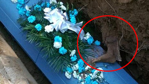 بالصور.. مشهد مرعب لقدم تخرج أثناء دفن جثة