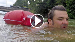 بالفيديو.. الماني يذهب إلى عمله سباحة بسبب الازدحام ..