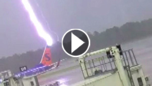 صاعقة برق تضرب طائرة وتصيب عاملا على ارض المطار.. فيديو