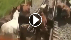 فيديو مؤلم.. قطار سريع يدهس مجموعة خيول اعترضت طريقه!