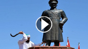 رجل ملتحي يهاجم تمثال اتاتورك بمنجل والشرطة تعتقله.. ..