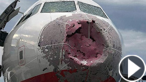 هبوط اعجازي لطائرة تركية بعد تحطم واجهتها بصخور ثلجية.. ..