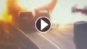 بالفيديو.. انفجار هائل إثر اصطدام شاحنتين على طريق سريع