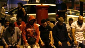 مسلمون يواصلون الصلاة خارج مسجد لندن بعد حادث الدهس.. صور