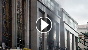 فيديو مثير.. اب ينقذ افراد اسرته من النيران بالقائهم من الطابق ..