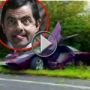 مستر بين ينجو من الموت بعدما اشتعلت النيران بسيارته