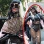 بالصور: ليدي غاغا ترتدي تنورة بلاستيك شفاف وقناع دانتيل!